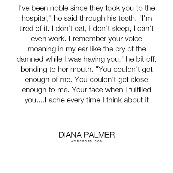 I've been noble since they took you to the hospital," he said through his teeth. "I'm tired of it. I don't eat, I don't sleep, I can't even work. I remember your voice moaning in my ear like the cry of the damned while I was having you," he bit off, bending to her mouth. "You couldn't get enough of me. You couldn't get close enough to me. Your face when I fulfilled you....I ache every time I think about it