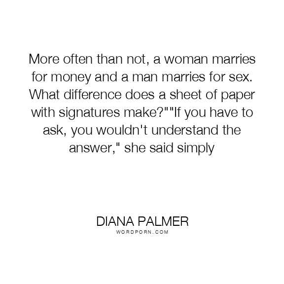 More often than not, a woman marries for money and a man marries for sex. What difference does a sheet of paper with signatures make?""If you have to ask, you wouldn't understand the answer," she said simply