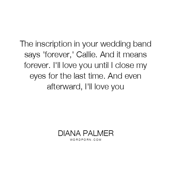 The inscription in your wedding band says 'forever,' Callie. And it means forever. I'll love you until I close my eyes for the last time. And even afterward, I'll love you