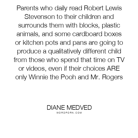 Parents who daily read Robert Lewis Stevenson to their children and surrounds them with blocks, plastic animals, and some cardboard boxes or kitchen pots and pans are going to produce a qualitatively different child from those who spend that time on TV or videos, even if their choices ARE only Winnie the Pooh and Mr. Rogers