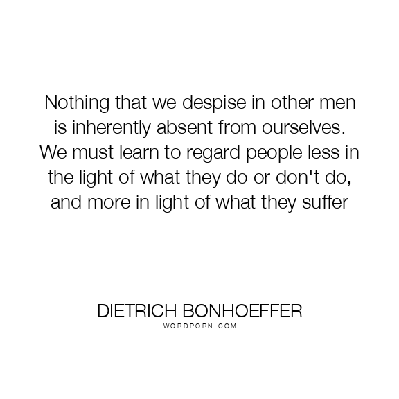 Nothing that we despise in other men is inherently absent from ourselves. We must learn to regard people less in the light of what they do or don't do, and more in light of what they suffer
