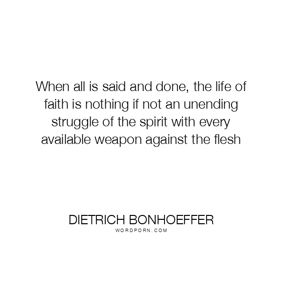 When all is said and done, the life of faith is nothing if not an unending struggle of the spirit with every available weapon against the flesh