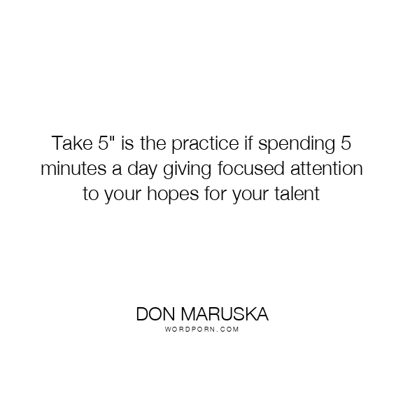 Take 5" is the practice if spending 5 minutes a day giving focused attention to your hopes for your talent