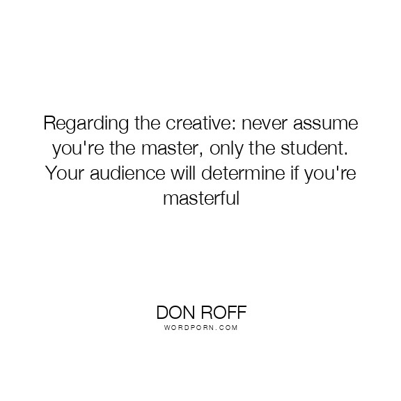 Regarding the creative: never assume you're the master, only the student. Your audience will determine if you're masterful