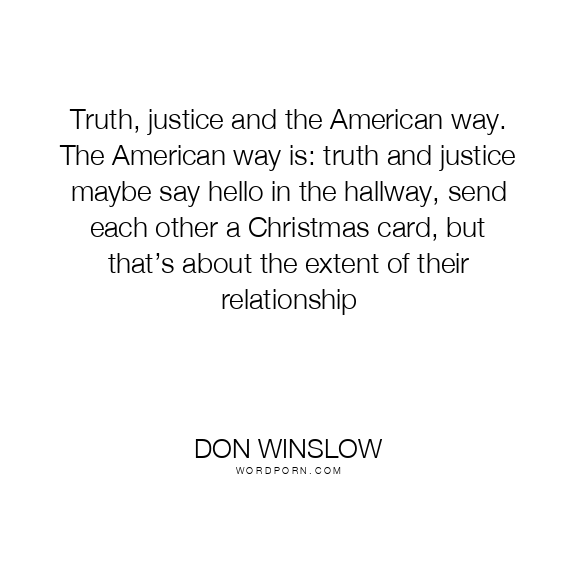 Truth, justice and the American way. The American way is: truth and justice maybe say hello in the hallway, send each other a Christmas card, but that’s about the extent of their relationship