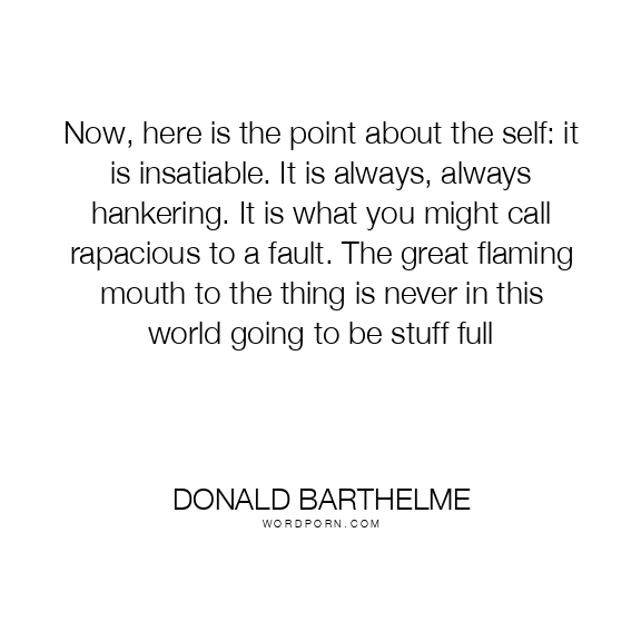Now, here is the point about the self: it is insatiable. It is always, always hankering. It is what you might call rapacious to a fault. The great flaming mouth to the thing is never in this world going to be stuff full