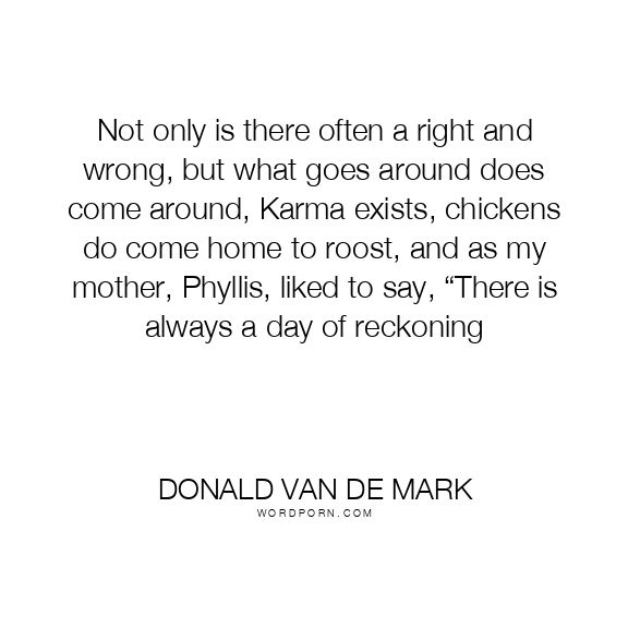 Not only is there often a right and wrong, but what goes around does come around, Karma exists, chickens do come home to roost, and as my mother, Phyllis, liked to say, “There is always a day of reckoning