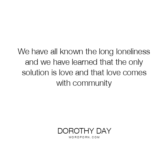 We have all known the long loneliness and we have learned that the only solution is love and that love comes with community