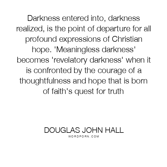 Darkness entered into, darkness realized, is the point of departure for all profound expressions of Christian hope. 'Meaningless darkness' becomes 'revelatory darkness' when it is confronted by the courage of a thoughtfulness and hope that is born of faith's quest for truth