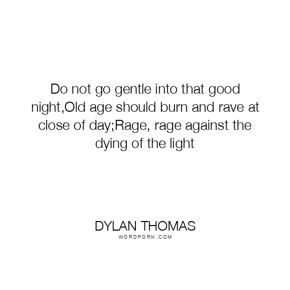 Do not go gentle into that good night,Old age should burn and rave at close of day;Rage, rage against the dying of the light