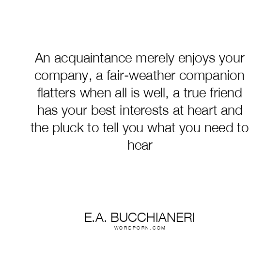 An acquaintance merely enjoys your company, a fair-weather companion flatters when all is well, a true friend has your best interests at heart and the pluck to tell you what you need to hear
