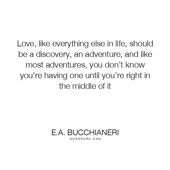 Love, like everything else in life, should be a discovery, an adventure, and like most adventures, you don’t know you’re having one until you’re right in the middle of it