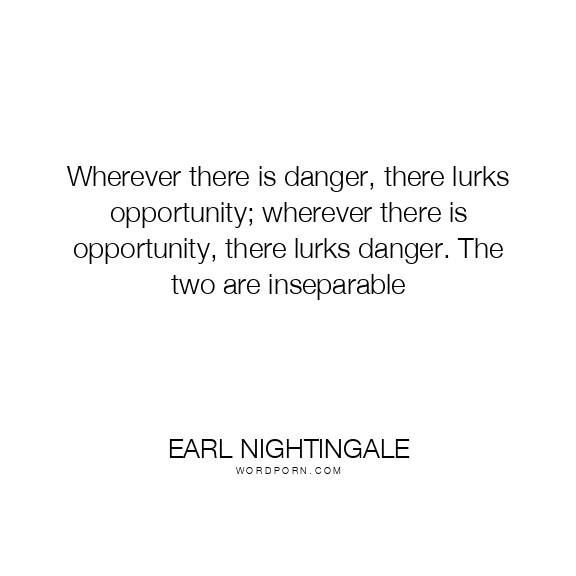 Wherever there is danger, there lurks opportunity; wherever there is opportunity, there lurks danger. The two are inseparable
