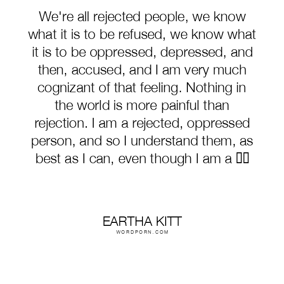 We're all rejected people, we know what it is to be refused, we know what it is to be oppressed, depressed, and then, accused, and I am very much cognizant of that feeling. Nothing in the world is more painful than rejection. I am a rejected, oppressed person, and so I understand them, as best as I can, even though I am a ❗☒