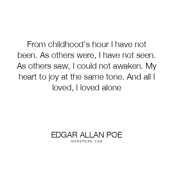 From childhood's hour I have not been. As others were, I have not seen. As others saw, I could not awaken. My heart to joy at the same tone. And all I loved, I loved alone