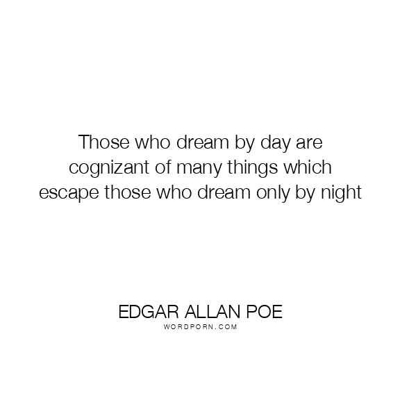 Those who dream by day are cognizant of many things which escape those who dream only by night