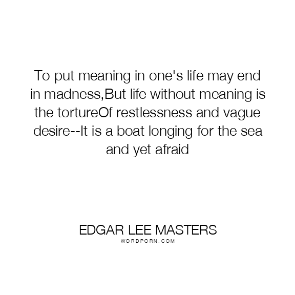 To put meaning in one's life may end in madness,But life without meaning is the tortureOf restlessness and vague desire--It is a boat longing for the sea and yet afraid