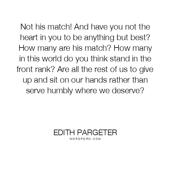 Not his match! And have you not the heart in you to be anything but best? How many are his match? How many in this world do you think stand in the front rank? Are all the rest of us to give up and sit on our hands rather than serve humbly where we deserve?