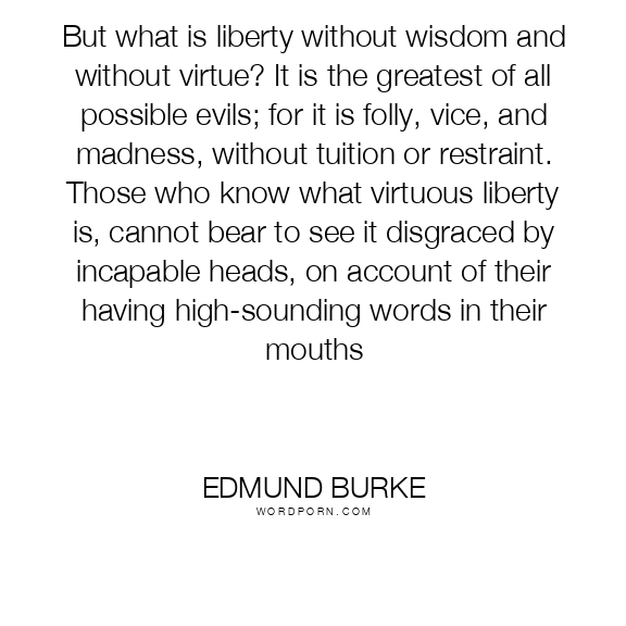 But what is liberty without wisdom and without virtue? It is the greatest of all possible evils; for it is folly, vice, and madness, without tuition or restraint. Those who know what virtuous liberty is, cannot bear to see it disgraced by incapable heads, on account of their having high-sounding words in their mouths