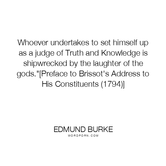 Whoever undertakes to set himself up as a judge of Truth and Knowledge is shipwrecked by the laughter of the gods."[Preface to Brissot's Address to His Constituents (1794)]