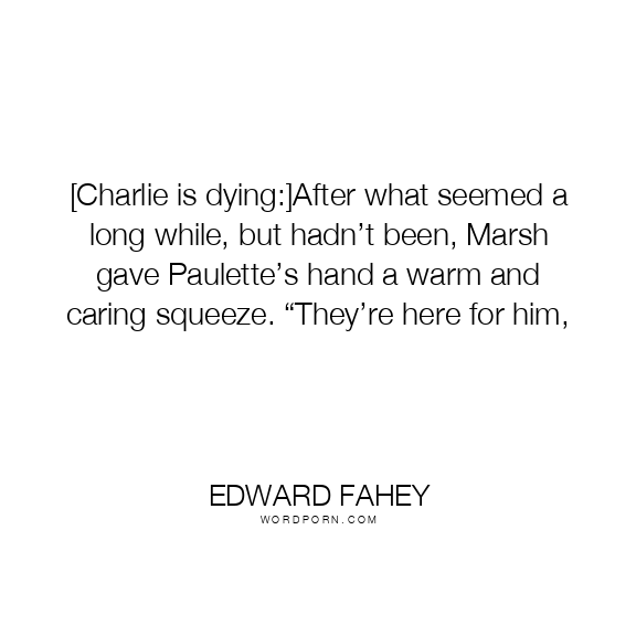 [Charlie is dying:]After what seemed a long while, but hadn’t been, Marsh gave Paulette’s hand a warm and caring squeeze. “They’re here for him,
