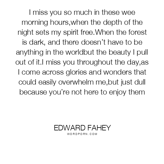 I miss you so much in these wee morning hours,when the depth of the night sets my spirit free.When the forest is dark, and there doesn’t have to be anything in the worldbut the beauty I pull out of it.I miss you throughout the day,as I come across glories and wonders that could easily overwhelm me,but just dull because you’re not here to enjoy them