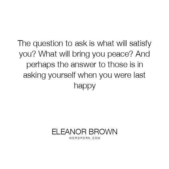 The question to ask is what will satisfy you? What will bring you peace? And perhaps the answer to those is in asking yourself when you were last happy