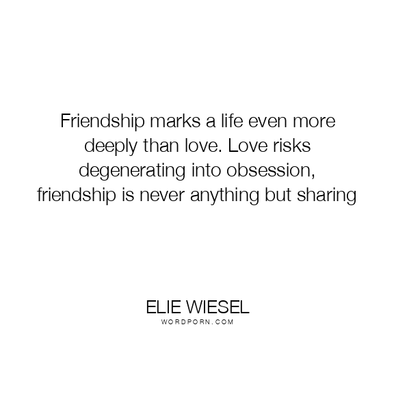 Friendship marks a life even more deeply than love. Love risks degenerating into obsession, friendship is never anything but sharing