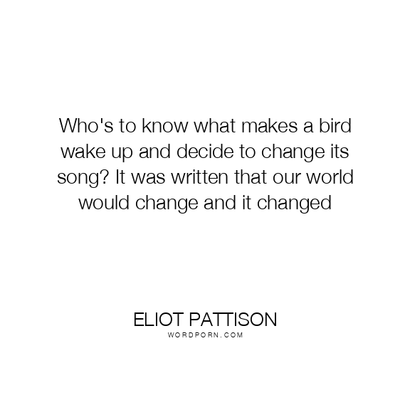 Who's to know what makes a bird wake up and decide to change its song? It was written that our world would change and it changed