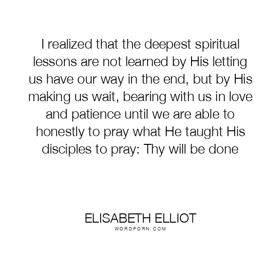 I realized that the deepest spiritual lessons are not learned by His letting us have our way in the end, but by His making us wait, bearing with us in love and patience until we are able to honestly to pray what He taught His disciples to pray: Thy will be done