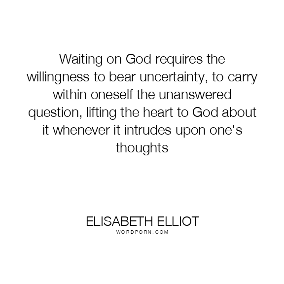 Waiting on God requires the willingness to bear uncertainty, to carry within oneself the unanswered question, lifting the heart to God about it whenever it intrudes upon one's thoughts