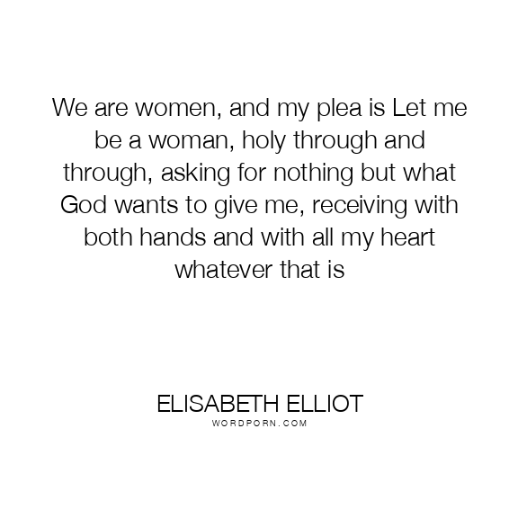 We are women, and my plea is Let me be a woman, holy through and through, asking for nothing but what God wants to give me, receiving with both hands and with all my heart whatever that is