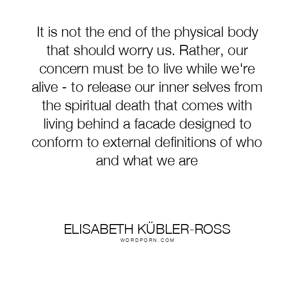 It is not the end of the physical body that should worry us. Rather, our concern must be to live while we're alive - to release our inner selves from the spiritual death that comes with living behind a facade designed to conform to external definitions of who and what we are