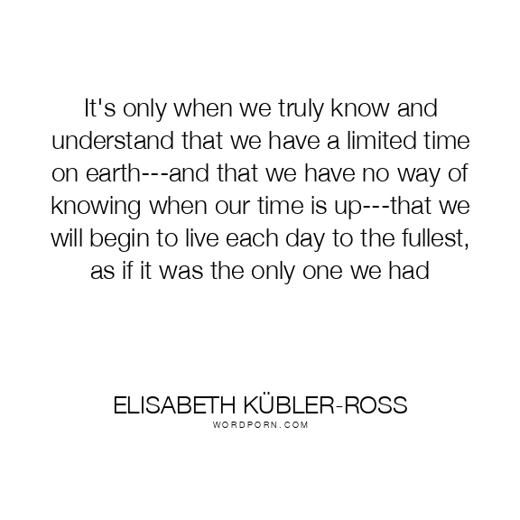 It's only when we truly know and understand that we have a limited time on earth---and that we have no way of knowing when our time is up---that we will begin to live each day to the fullest, as if it was the only one we had