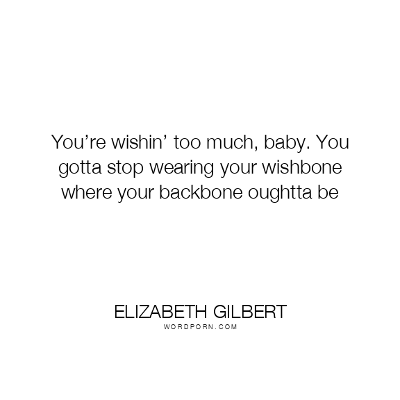 You’re wishin’ too much, baby. You gotta stop wearing your wishbone where your backbone oughtta be