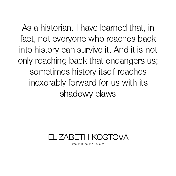 As a historian, I have learned that, in fact, not everyone who reaches back into history can survive it. And it is not only reaching back that endangers us; sometimes history itself reaches inexorably forward for us with its shadowy claws