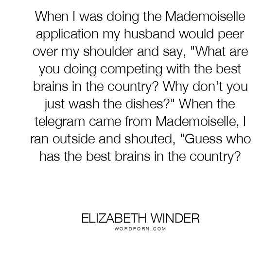 When I was doing the Mademoiselle application my husband would peer over my shoulder and say, "What are you doing competing with the best brains in the country? Why don't you just wash the dishes?" When the telegram came from Mademoiselle, I ran outside and shouted, "Guess who has the best brains in the country?