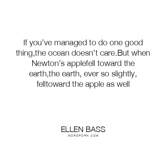 If you’ve managed to do one good thing,the ocean doesn’t care.But when Newton’s applefell toward the earth,the earth, ever so slightly, felltoward the apple as well