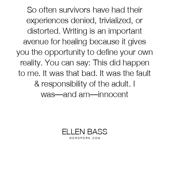 So often survivors have had their experiences denied, trivialized, or distorted. Writing is an important avenue for healing because it gives you the opportunity to define your own reality. You can say: This did happen to me. It was that bad. It was the fault & responsibility of the adult. I was—and am—innocent