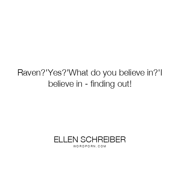 Raven?'Yes?'What do you believe in?'I believe in - finding out!