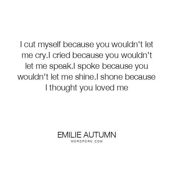 I cut myself because you wouldn't let me cry.I cried because you wouldn't let me speak.I spoke because you wouldn't let me shine.I shone because I thought you loved me