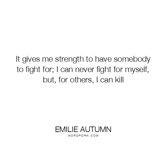 It gives me strength to have somebody to fight for; I can never fight for myself, but, for others, I can kill