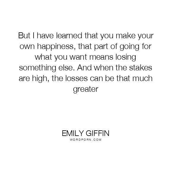 But I have learned that you make your own happiness, that part of going for what you want means losing something else. And when the stakes are high, the losses can be that much greater