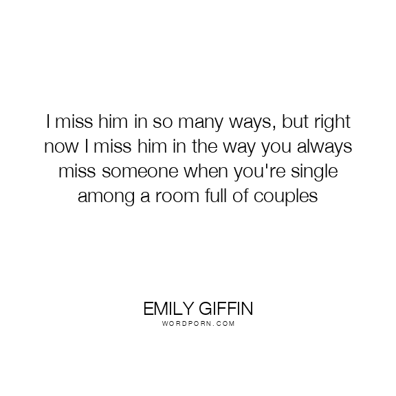 I miss him in so many ways, but right now I miss him in the way you always miss someone when you're single among a room full of couples
