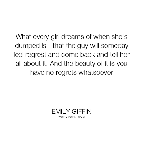 What every girl dreams of when she's dumped is - that the guy will someday feel regrest and come back and tell her all about it. And the beauty of it is you have no regrets whatsoever