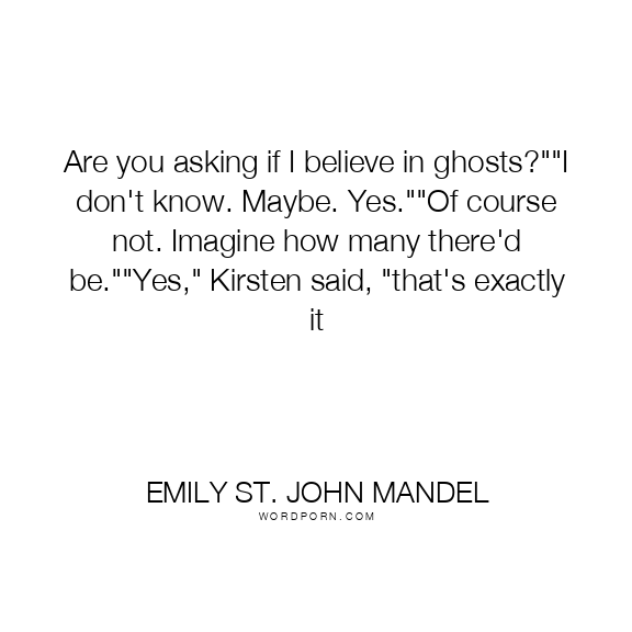 Are you asking if I believe in ghosts?""I don't know. Maybe. Yes.""Of course not. Imagine how many there'd be.""Yes," Kirsten said, "that's exactly it