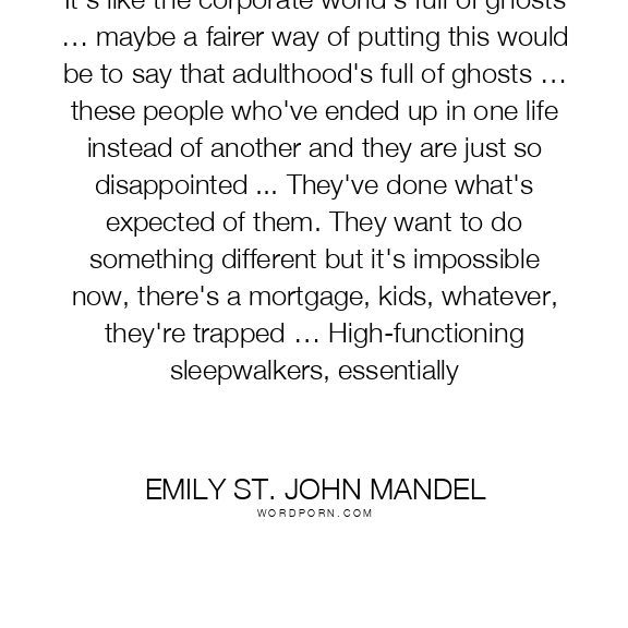 It's like the corporate world's full of ghosts … maybe a fairer way of putting this would be to say that adulthood's full of ghosts … these people who've ended up in one life instead of another and they are just so disappointed ... They've done what's expected of them. They want to do something different but it's impossible now, there's a mortgage, kids, whatever, they're trapped … High-functioning sleepwalkers, essentially