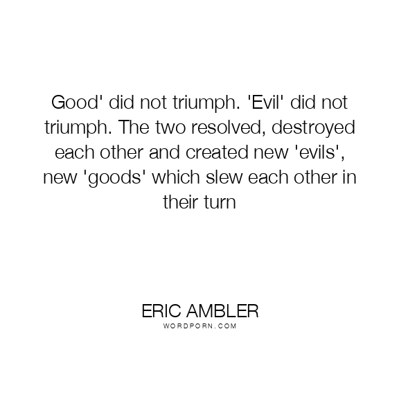 Good' did not triumph. 'Evil' did not triumph. The two resolved, destroyed each other and created new 'evils', new 'goods' which slew each other in their turn