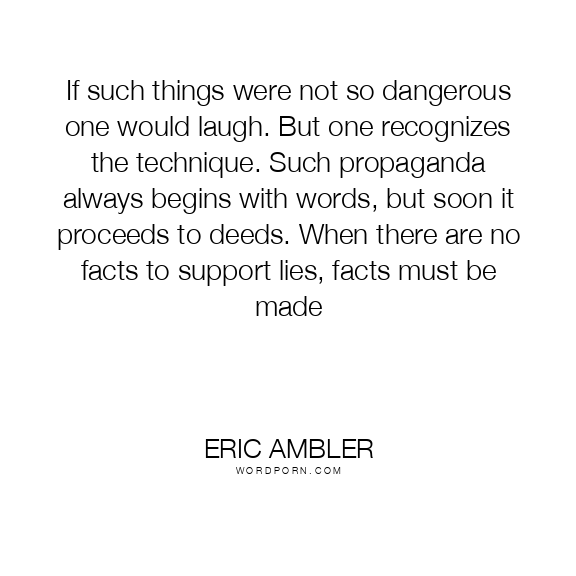 If such things were not so dangerous one would laugh. But one recognizes the technique. Such propaganda always begins with words, but soon it proceeds to deeds. When there are no facts to support lies, facts must be made
