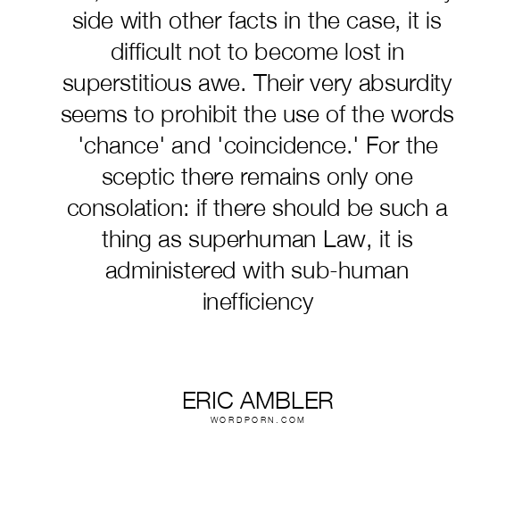 Yet, when these facts are seen side by side with other facts in the case, it is difficult not to become lost in superstitious awe. Their very absurdity seems to prohibit the use of the words 'chance' and 'coincidence.' For the sceptic there remains only one consolation: if there should be such a thing as superhuman Law, it is administered with sub-human inefficiency
